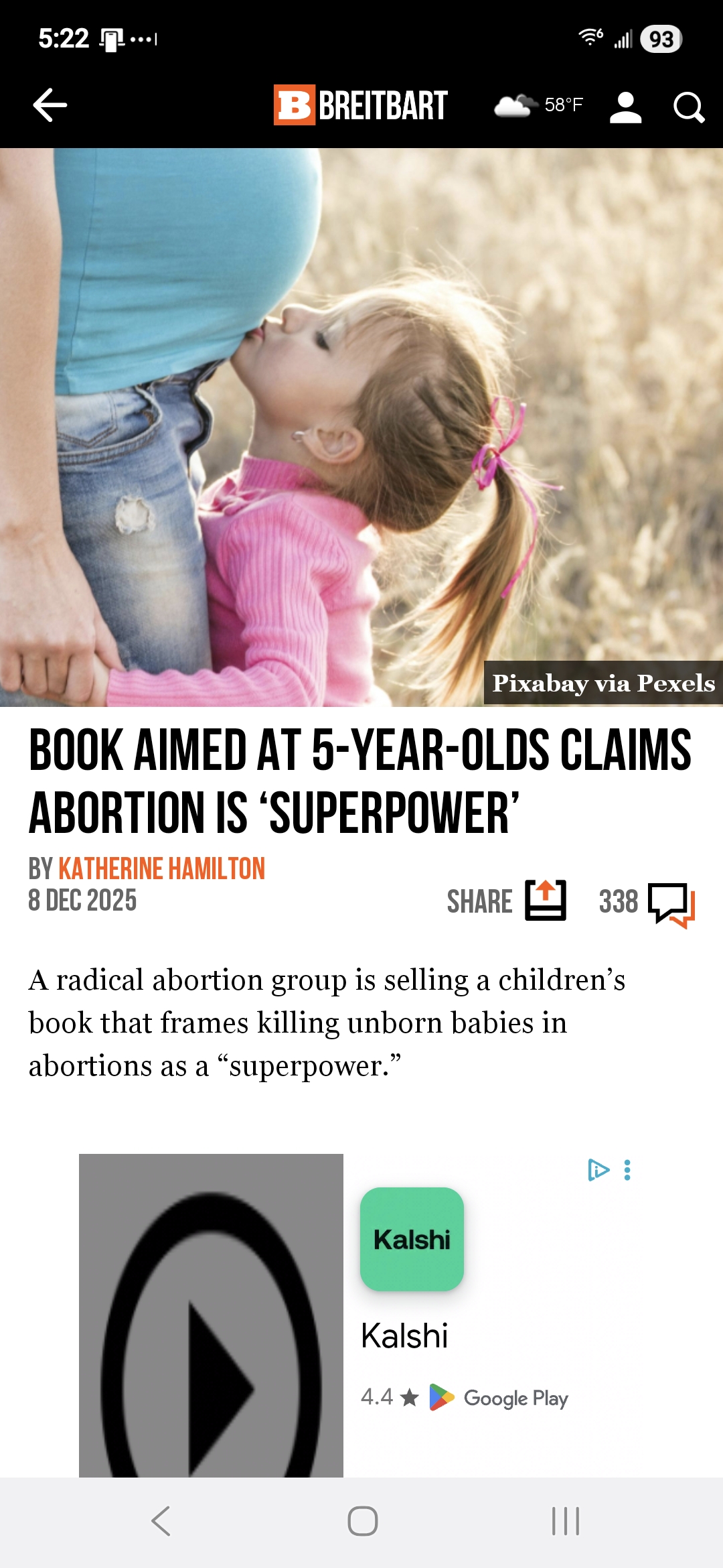 Book Aimed at 5-Year-Olds Claims Abortion Is ‘Superpower’www.breitbart.com/politics/2025/12/08/new-book-aimed-5-year-olds-claims-abortion-is-superpower/ Sent from my Galaxy