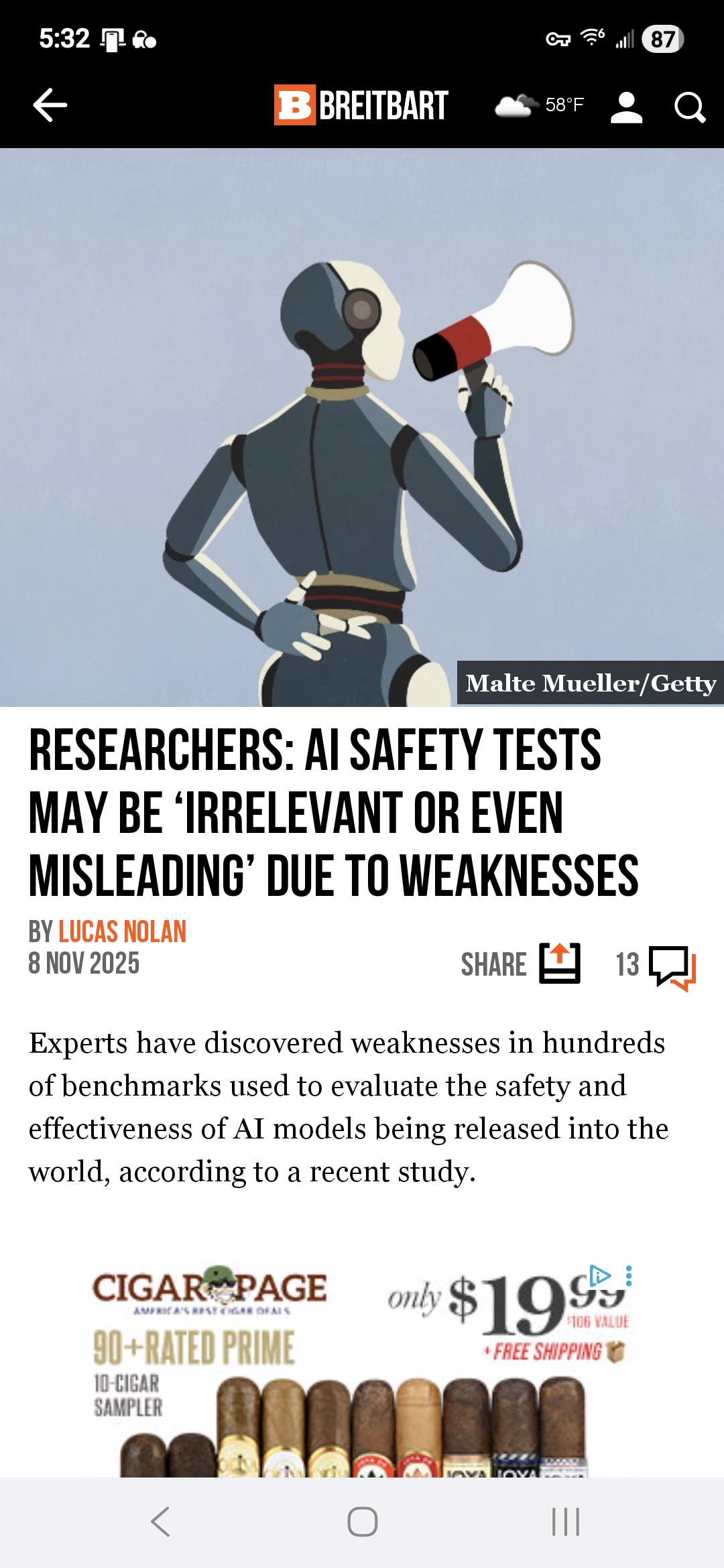 Researchers: AI Safety Tests May Be ‘Irrelevant or Even Misleading’ Due to Weaknesseswww.breitbart.com/tech/2025/11/08/researchers-ai-safety-tests-may-be-irrelevant-or-even-misleading-due-to-weaknesses/ Sent from my […]