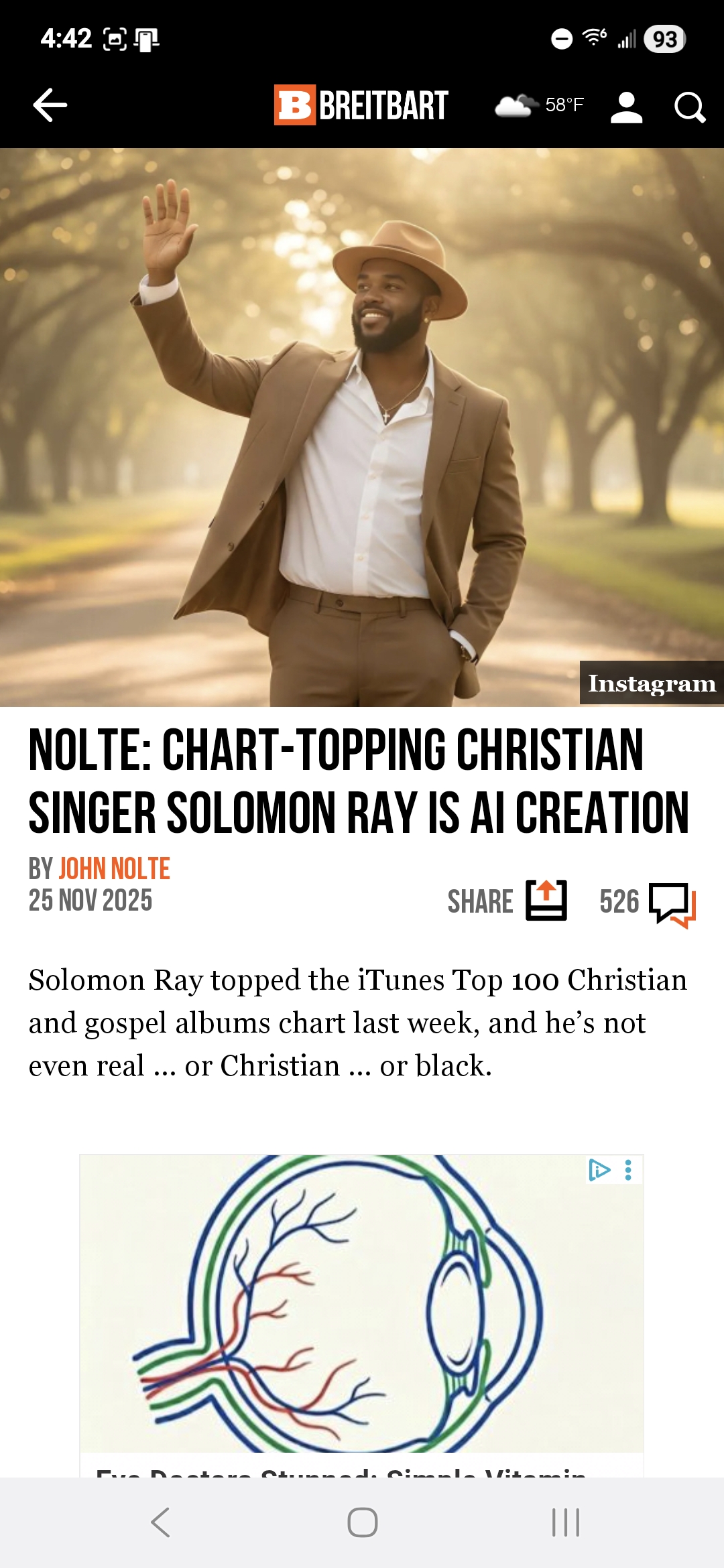 Nolte: Chart-topping Christian Singer Solomon Ray Is AI Creationwww.breitbart.com/entertainment/2025/11/25/nolte-chart-topping-christian-singer-solomon-ray-is-ai-creation/ Sent from my Galaxy