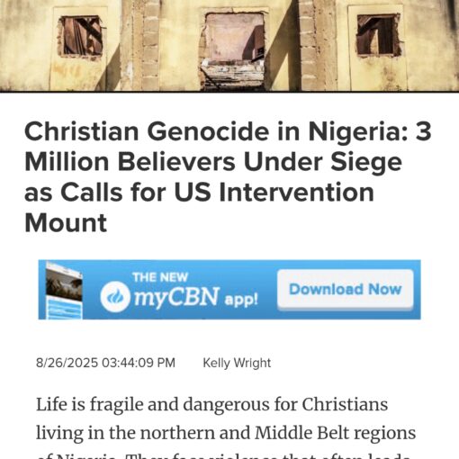 www1.cbn.com/cbnnews/world/2025/august/christian-genocide-in-nigeria-3-million-believers-under-siege-as-calls-for-us-intervention-mount Sent from my Galaxy